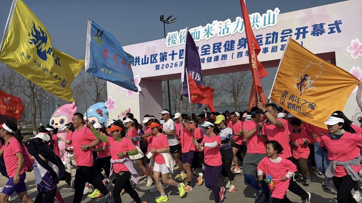 湖北日报讯(记者严芳婷、通讯员赵浩宇)三月的武汉,樱花烂漫,正是江城最美的时节。3月14日,在武汉市洪山江滩公园落英花园,以“樱你而来 活力洪山”为主题的洪山区第十四届全民健身运动会开幕式暨2026洪山江滩健康跑(四季赛事启幕站)热力开跑。在烂漫樱花与滨江美景的交相辉映中,洪山区开启了贯穿全年的“四季赛事”全新篇章。
