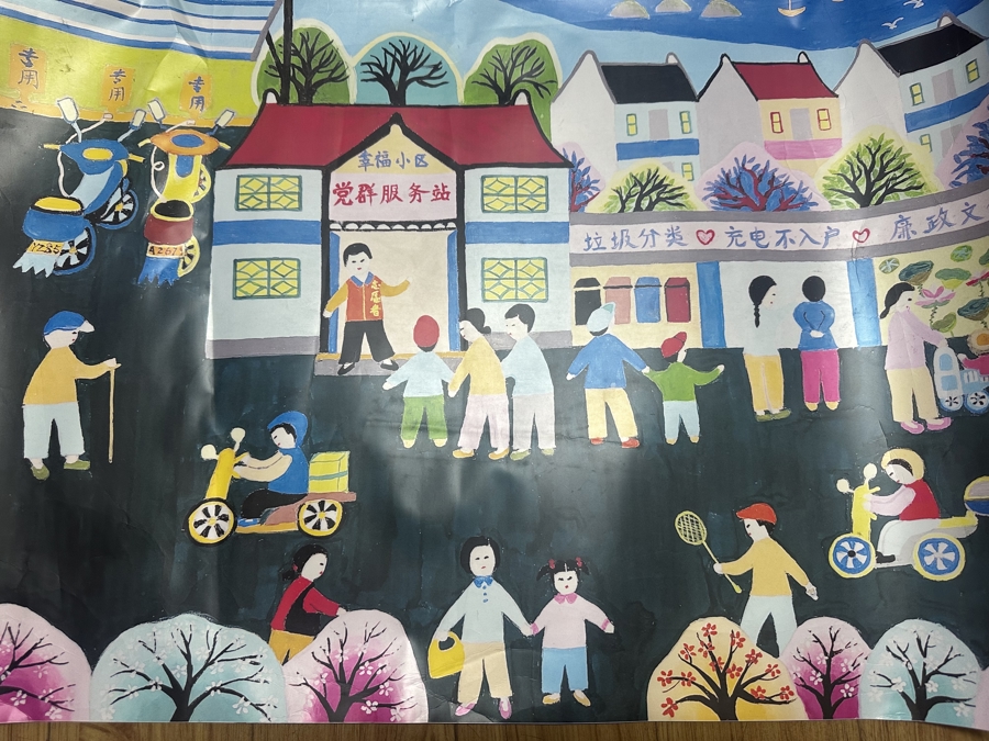《做一讲,美十分》描绘了志愿者上门帮老人整理杂物的场景;《电表箱旁的警示》用夸张的笔触提醒居民注意用电安全……垃圾分类、平安建设、廉政文化、志愿服务,这些出自社区居民之手的“土味作品”,因熟悉而亲切,因真实而深入人心。