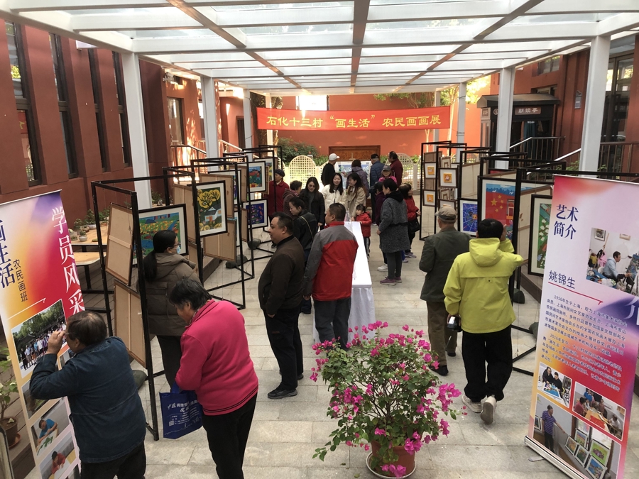九年坚持,画班累计创作主题作品百余幅,开展公益展览数十场,培养固定学员上百人。去年,十三村“画生活”项目获评金山区基层治理创新案例。