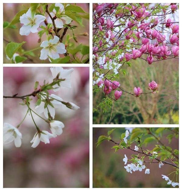 栈桥两侧,千树桃花灼灼绽放,粉嫩的花瓣随风轻舞,在地面织就绚丽花毯;不远处的樱花如云似霞,层层叠叠的花瓣随风飘落,浪漫氛围拉满;道路旁的紫荆花热烈盛开,紫艳的花团在枝头燃烧,为春日增添了一抹奔放的亮色。